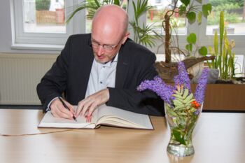 Zum Glück gibt es den MV-Schutzfond, der einige Möglichkeiten bietet. Von hier fließen jetzt auch weitere 416.000 Euro für Sanierungsarbeiten am Gebäude der Regionalen Schule in Rechlin. Den Zuwendungsbescheid brachte Innenminister Christian Pegel am Freitag mit an die Müritz. Bei Kaffee und Kuchen schrieb sich der Minister ins „Goldene Buch von Rechlin“ ein und unterstrich: „Gute Ideen werden belohnt. Im normalen Schulbetrieb erfahren die Schüler meistens zwei harte Brüche. Nach der vierten und nach der sechsten Klasse werden viele von Freunden und bekannten Lehrern getrennt. Ihr neues altes System ist da sozialverträglicher“, gestand Christian Pegel ein.