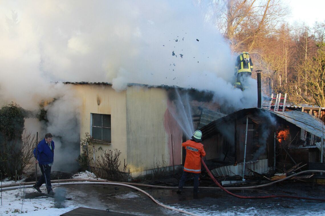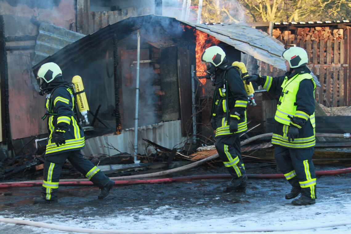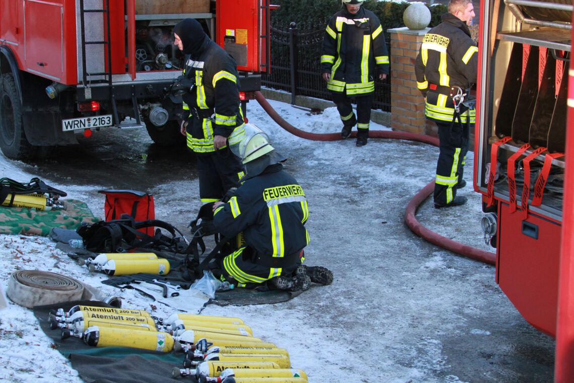Ein brennender Schuppen hat gestern Nachmittag die Feuerwehren in Möllenhagen in Atem gehalten. Gegen 13:40 Uhr wurden Rauch und Flammen im Kastanienweg durch Anwohner bemerkt. Diese alarmierten die Feuerwehr, die binnen weniger Minuten mit mehreren Löschfahrzeugen und 30 Einsatzkräften aus Möllenhagen, Kraase und Lehsten anrückten. Unter schwerem Atemschutz und über zwei Strahlrohre konnten die Flammen schnell eingedämmt und ein Übergreifen der Flammen auf die benachbarten Wohnhäuser verhindert werden. Doch das eingelagerte Stroh für Kleintiere bot den Glutnestern immer wieder ausreichend Nahrung. Auch eine Stunde nach Alarm konnte das Feuer noch nicht gänzlich gelöscht werden. Weitere Kameraden aus Penzlin wurden mit Atemschutzgeräten und zur Ablösung der ersten Kräfte angefordert. Die Löscharbeiten dauerten noch bis in den frühen Abend an. Ebenso lange lag eine dichte Rauchschwade über Möllenhagen. Die Brandursache wird derzeit ermittelt.
