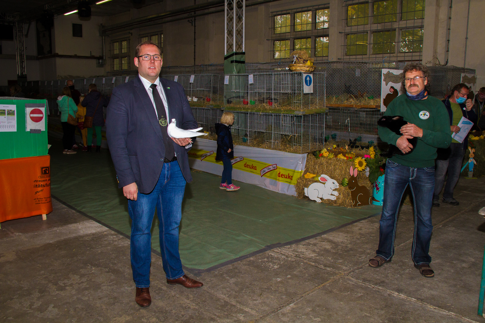 „Wir haben 507 ausgestellte Geflügel und 216 verschiedene Kaninchen“, erklärte Mathias Hoffmann und ergänzte: „Das hat auch Röbels Bürgermeister Andreas Sprick neugierig gemacht, denn der kam am Samstag zur offiziellen Eröffnung. „Unbestritten gehört die Kleintierzucht zu unserem Vereinsleben und bereichert es gleichermaßen“, so Andres Sprick, der die Organisation, Kontinuität, die Wissensvermittlung und das soziale Miteinander würdigte. Gewürdigt sollten auch die schönsten Tiere werden. Hierfür rückten bereits am Freitag jeweils acht Wertungsrichter an, um die Tauben, Enten, Hühner und Kaninchen zu bepunkten. „Eine dreiköpfige Jury begutachtete die Kaninchen und gleich fünf Juroren bewerteten das Geflügel“, so Peter Heinrich. Und eben diese Wertung erwarteten die 209 Züchter, die eigens aus dem gesamten Bundesgebiet anreisten, mit voller Spannung. „Wir haben aber darauf geachtet, dass keine Personen aus Risikogebieten zu uns kommen“, versicherte Mathias Hoffmann. Nach Einschätzung der Kaninchen-Jury waren gleich zwölf ausgestellte Rassen erstklassig und wurden mit 97 Punkten bewertet. Der blau-weiße Holländer von Robert Scheppart aus Nossentiner Hütte kam sogar auf 97,5 Punkte und siegte in seiner Klasse. Bei den gefiederten Zweibeinern gab es insgesamt sechs Prämierungen. Mathias Hoffmann konnte hier mit seinem Geflügel gleich dreimal punkten.