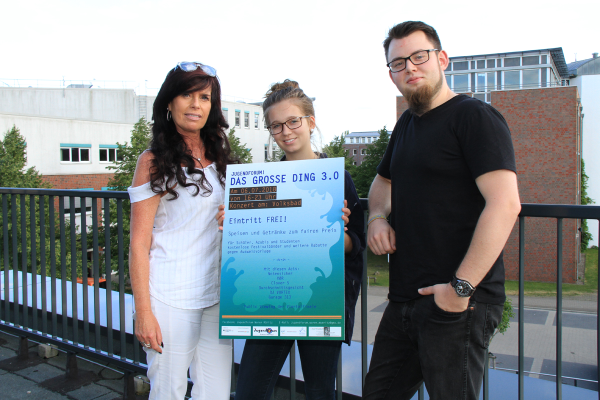Ein weiterer Höhepunkt wird mit dem Start der Sommerferien hinzukommen. „Am 06. Juli wird es am Volksband von Waren (Müritz) das ,Große Ding 3.0‘ geben“, macht die 17jährige Vorsitzende des Jugendforums neugierig. Und jene, die im Sommer 2017 auf dem Neuen Marks von Waren (Müritz) dabei waren, ahnen bereits, dass das wieder eine ganz besondere Sause von Jugendlichen für Jugendliche und Junggebliebene wird. „Ab 16 Uhr bieten wir am Müritzufer bei kostenfreiem Eintritt jede Menge Platz für Musik und nette Gespräche und ausgelassene Geselligkeit“, so Philipp Lüders. Bis 23 Uhr wird das „Große Ding 3.0“, das als kulturelle und demokratische Veranstaltung alle Kinder und Jugendlichen der Region ansprechen will, Vereinen und Verbänden die Möglichkeit bieten, ihre Arbeit vorzustellen. Für einen Hauch eines kleinen Musikfestivals sorgen die Bands Vør, Clover 5, Durchschnittsgesicht, DJ Vortex und Garage 313, die die musikalische Bühne betreten. „Getränke und Speisen wird es zu fairen Preisen geben. Dafür konnten wir die Gaststätte ,Zum Strandkorb‘ gewinnen“, verspricht Philipp Lüders. Jene, die bereits die WM-Fußballspiele auf dem Programmplan haben, bietet „ Das Große Ding 3.0“ die Möglichkeit zum Public Viewing.