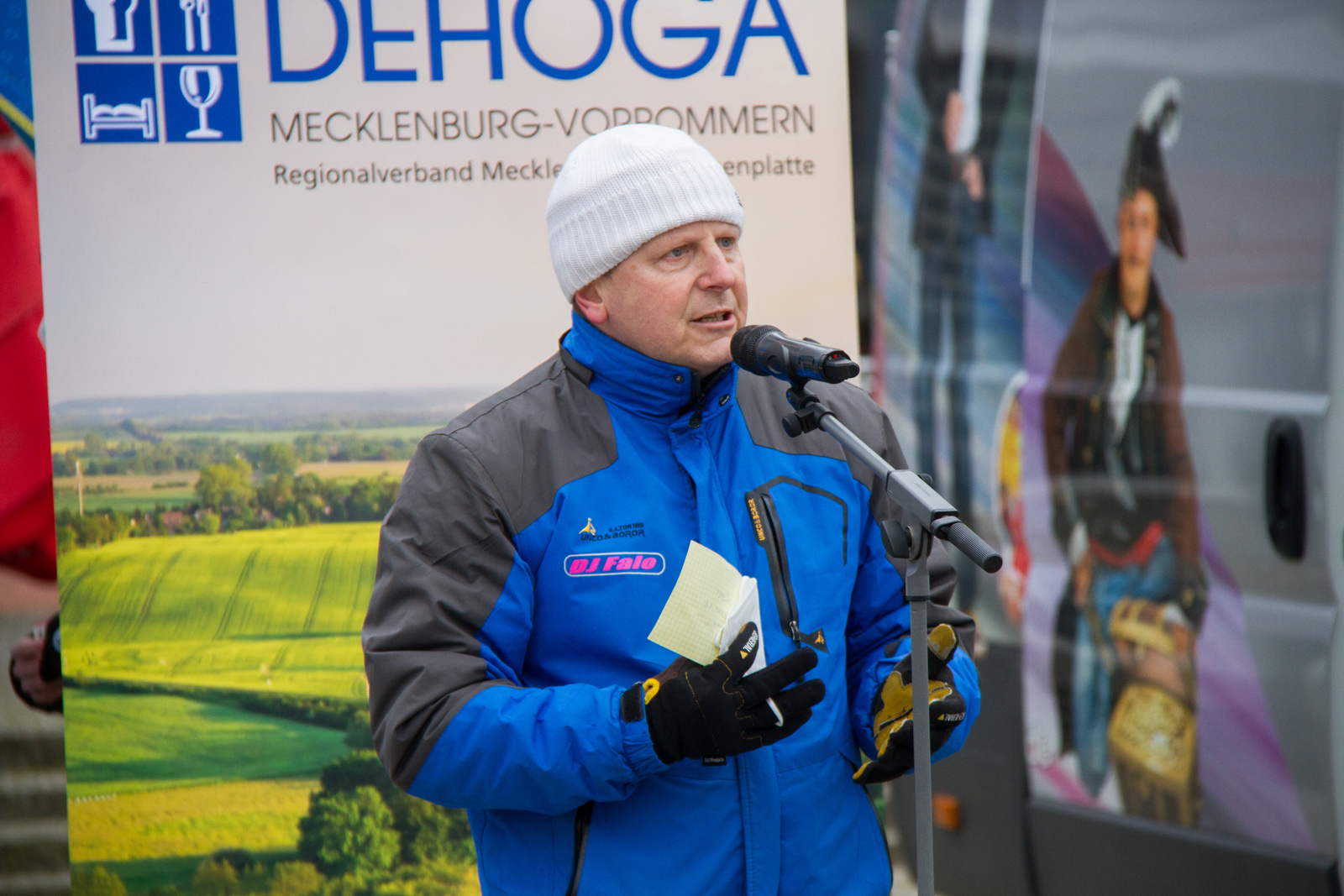 Etwas deutlicher wurde Dirk Nordmann, der mit einem großen Plakat seine Meinung in die Welt schreien wollte: „Kein Tisch & Bett für Politiker“ machte der Hotelier seinem Unmut über die nicht nachvollziehbaren Zwangsschließungen deutlich. „Wir betreiben unser Ferienobjekt in Barlin seit 30 Jahren. Im Januar 2020 hab ich unser Jugendcamp ,Alte Schule‘ an meine Söhne Dennis und Dustin übergeben. Doch was habe ich jetzt übergeben. Über die Borniertheit der Politiker kann man sich nur wundern“, zeigte sich der Touristiker frustriert. Und der Frust wächst und wird langsam unbeherrschbar. „Uns wurden die Herbstferien, das Weihnachtsgeschäft, die Winterferien und jetzt auch noch Ostern genommen. Wir brauchen Perspektiven“, forderte Sandra Kallisch-Puchelt. Das unterstrich auch Lars Schwarz vom DEHOGA-Präsidium. „Wir bringen hier seit Monaten Zwangsopfer. Dabei sind wir keine Pandemietreiber, denn wir sind Hygiene-Profis “, nahm Lars Schwarz langsam Fahrt auf und steigerte sich weiter in die Thematik. „Wenn eine gutgelaunte Ministerpräsidentin vor die Kamera tritt und einen Perspektivplan verkündet, der keiner ist, kann mit nur mit dem Kopf schütteln. Außengastronomie mag im bayrischen Biergarten funktionieren, aber doch hier nicht. Laut RKI ist im Hotel ein moderates und im Restaurant ein geringes Risiko, sich zu infizieren“, so der Hotelier, der gleichzeitig deutlich machte: „Der Tourismus in MV, das sind 65.000 Arbeitsplätze und die wichtigste Branche in der Region.“ Beifall hallte über den Marktplatz, der die Zustimmung der Beteiligten unterstricht.