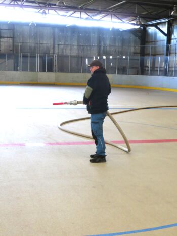 Das Eis ist nun für die kommenden Monate bereit. Eine reichliche Woche lang haben die Malchower mit dem Schlauch Schicht für Schicht Wasser aufgetragen und mit der „umgekehrten Fußbodenheizung“, wie Martin Noffz die Eisherstellungsanlage nennt, gekühlt, bis eine Eisdecke von knapp vier Zentimetern entstand. „Die Eisproduktion und der Unterhalt des Eises kosten viel Energie, die gerade jetzt sehr teuer ist. Daher haben wir eine Vorrichtung zum Entgasen und Verdichten des Eises angeschafft. Mit dieser wird das Eis haltbarer und fester, so dass es nicht so dick sein muss wie früher, was Energie spart“, erläutert Noffz.