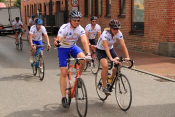 Unterwegs sammeln die Teilnehmer der Hanse-Tour Sonnenschein wieder Spenden, um den Spendentopf für das Projekt „Mike Möwenherz“ und weiterer sozialer Projekte zu füllen.