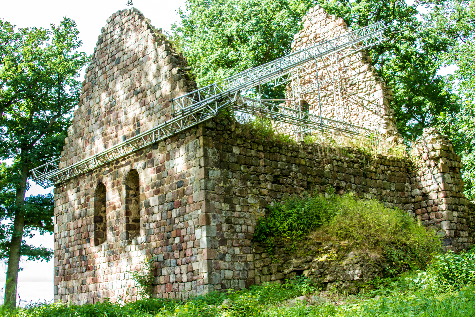Viel ist nicht mehr von der ehemaligen Wehrkirche Dambeck übriggeblieben. Aber dennoch versprüht sie einen gewissen Charme und hat jede Menge zu erzählen. Bereits Ende des 12. Jahrhunderts wurde das Gebäude errichtet und ist damit eine der ältesten Feldsteinkirchen im Süden Mecklenburgs. Gut 600 Jahre war die Kirche Mittelpunkt und Schutz für das alte Dambeck, das sich zwischen Wehrkirche und dem angrenzenden See erstreckte.