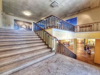 Noch bis zum 10. September sind in dem eindrucksvollen Kulturhaus in Mestlin, das in den 50-er Jahren erbaut wurde, die Fotos der Ausstellung "achtung" zu sehen. Das Haus öffnet jeweils von Mittwoch bis Sonntag von 11 bis 17 Uhr seine Pforten, so dass man dann die Werke von Heidi & Hans-Jürgen Koch, Gerhard Stromberg, Jörg Gläscher, Frank Herfort, Frauke Huber & Uwe H. Martin, Harald Bickel und Robin Hinsch betrachten kann. Sie sind in verschiedenen Räumen im Erdgeschoss und im Obergeschoss ausgestellt. "Die Fotothemen sind vielfältig: Eine Reise entlang des Colorado River (USA), der pompöse Baustil in Osteuropa, indische Landschaften, Simulationen vom steigenden Meeresspiegel an der Nordseeküste, giftige Pflanzen, staatliche Organe aus aller Welt, Raubbau an der Natur und ein landwirtschaftlicher Familienbetrieb in MV", heißt es im begleitenden Flyer.