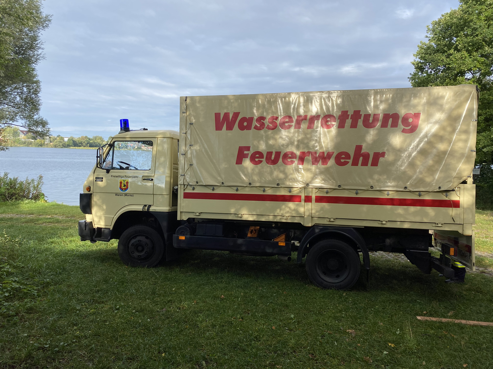 Trauriger Einsatz am Montagvormittag am Warener Tiefwarensee. Vom Uferweg unweit der Badestelle „Am Schwalbenberg“ sahen Spaziergänger Kleidungsstücke in Wassernähe und bei näherem Schauen auch eine Person im Wasser treiben. Das Pärchen alarmierte über Notruf 112 die Rettungskräfte. Neben einem Rettungswagen und einem Notarzteinsatzfahrzeug rückten auch acht Kameraden der Wassergefahrengruppe der Freiwilligen Feuerwehr Waren (Müritz) mit einem Schlauchboot und drei Fahrzeugen sowie drei Rettungsschwimmer der DRK Wasserwacht mit einem Einsatzfahrzeug in die Werdersiedlung an.