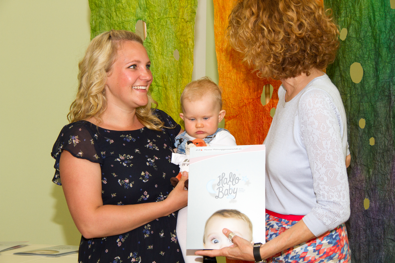 „Mit Kindern vergehen die Jahre wie im Flug. Doch Augenblicke werden zu Ewigkeiten“, mit diesem schönen und treffenden Zitat von Jochen Mariss eröffnete gestern Beate Schwarz im Warener „Roten Haus“ eine kleine Feierstunde, in der 13 neue Babys im Reigen der WWG-Mieter begrüßt wurden. Bereits traditionell werden einmal im Jahr die neuen Erdenbürger, deren Eltern als Mieter der Warener Wohnungsgenossenschaft eG (WWG) in der Müritzstadt leben, herzlich willkommen geheißen. „Viele Jahre liegt diese Idee bereits zurück, die mit Baumpflanzungen begonnen hatte. So wurden auf dem Papenberg und in der Westsiedlung dutzende Japanische Zierkirchen gepflanzt, die seitdem mit ihren Blüten erfreuen. Irgendwann gingen die Pflanzstellen aus, aber an dieser schönen Aktion wollte die WWG festhalten und nutzt hierfür die Begegnungsstätte „Rotes Haus“. Aber auch hier werden die Lütten, die in den vergangenen zwölf Monaten geboren wurden, bedacht. Mit einem Windelgutschein und einem Bekleidungsgutschein, beide jeweils in Höhe von 50 Euro, werden die Kinder und Eltern durch die WWG beschenkt. In gemütlicher Kaffeerunde konnten sich die Eltern zudem über die ersten Wochen und Monate mit dem Nachwuchs austauschen, während Fotograf Ole Steindorf-Sabath zahlreiche Eindrücke und Familienaufnahmen der Gäste im Bild festhielt.